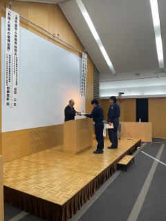 安全衛生大会では、募集した労働災害防止のアイデアの優秀者の皆さんを表彰した後、警察本部担当補佐に講演していただきました。最後に、大会宣言をして、労働災害防止を誓いました。(宣言、ありがとうございました。)